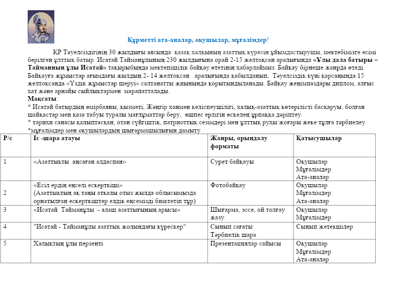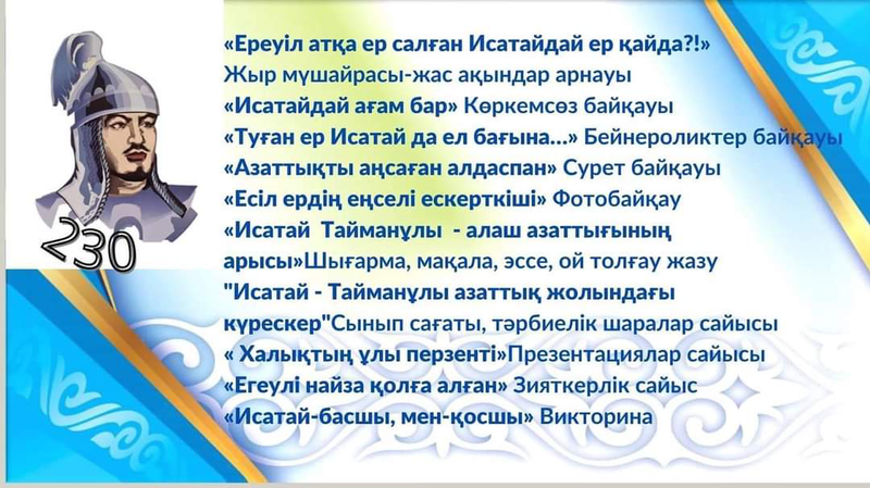 Исатай Тайманұлының 230 жылдығына арналған онкүндікте ұйымдастырылған байқаулар